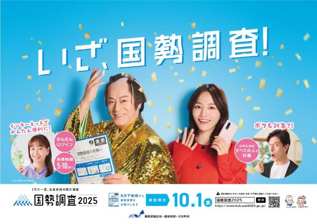 統計法に基づき、5年に1度、日本に住んでいるすべての人・世帯を対象とする国の最も重要な統計調査です。行政を進める上で最も基本となる人口・世帯数をはじめ、性別、年齢別、産業別などの人口の構造や世帯の構成・居住状況を明らかにするため行われます。「10月1日」を調査日に、名札を身に着けた調査員が「すべての世帯」を訪問し、調査票を配布・回収します。皆さまのご回答が必要です。ご協力をお願いいたします。