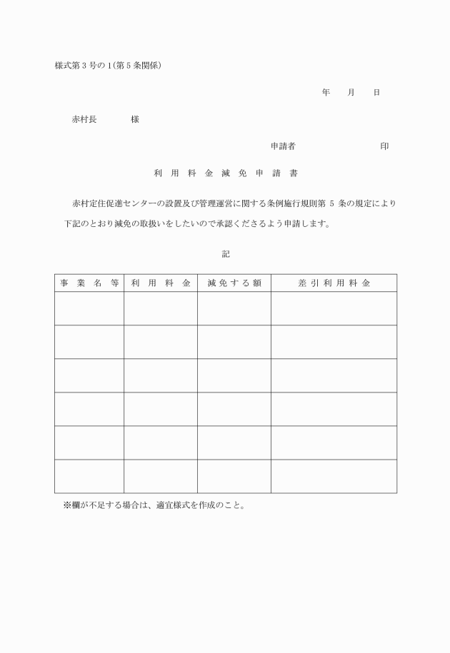 ○赤村定住促進センターの設置及び管理運営に関する条例施行規則