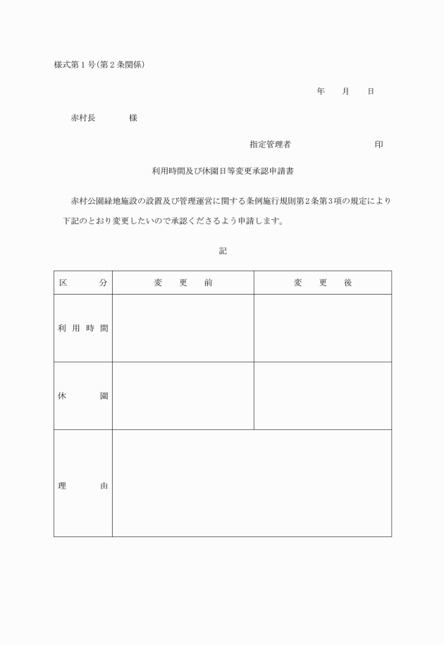 ○赤村公園緑地施設の設置及び管理運営に関する条例施行規則