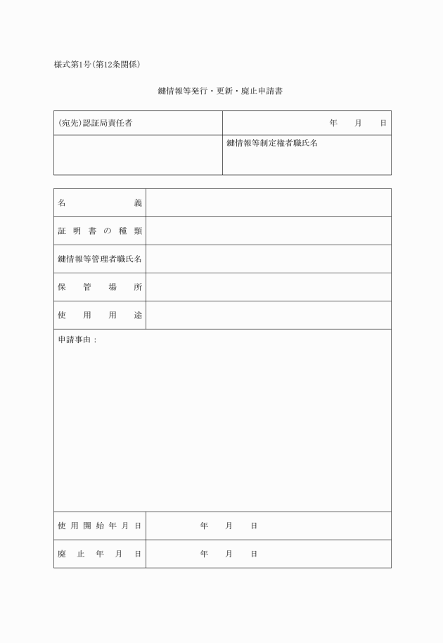 2 鍵情報等の発行申請は、鍵情報等発行・更新・廃止申請書(様式第1号)によるものとする。