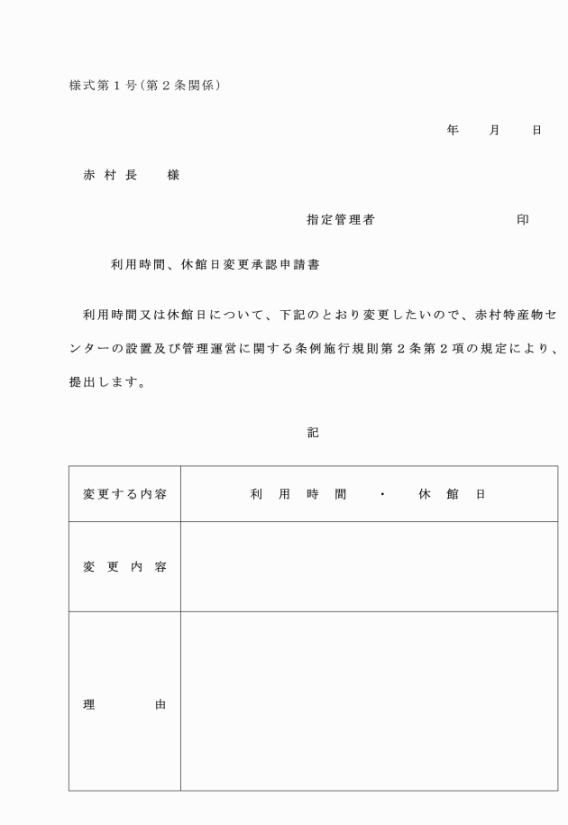 ○赤村特産物センターの設置及び管理運営に関する条例施行規則